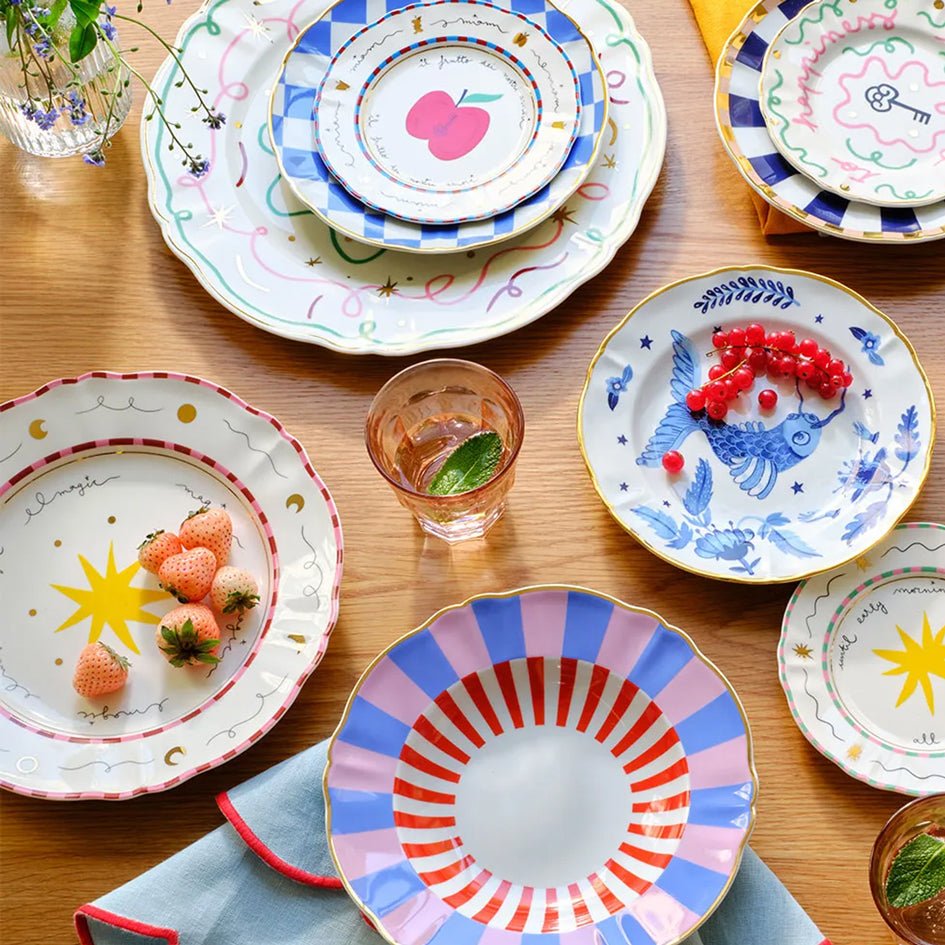This deep plate from the Abracadabra collection from the Italian design brand Bitossi Home is an ode to the wonders of nature. A red and white pattern shaped like lightning bolts adorns the plate, creating an enchanting sense of depth. A must-have for lovers of eclectic table settings and Italian design!