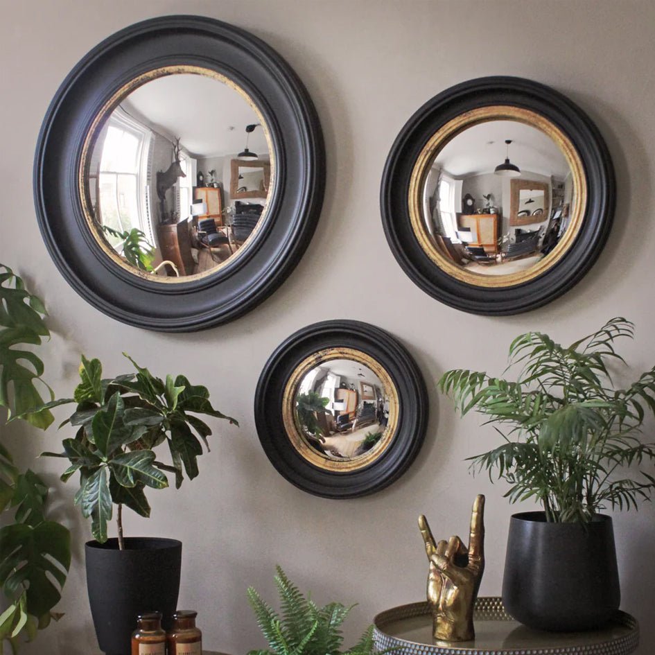 Convex Spiegel Antiek Goud-Zwarte Lijst Medium - SuperMatique