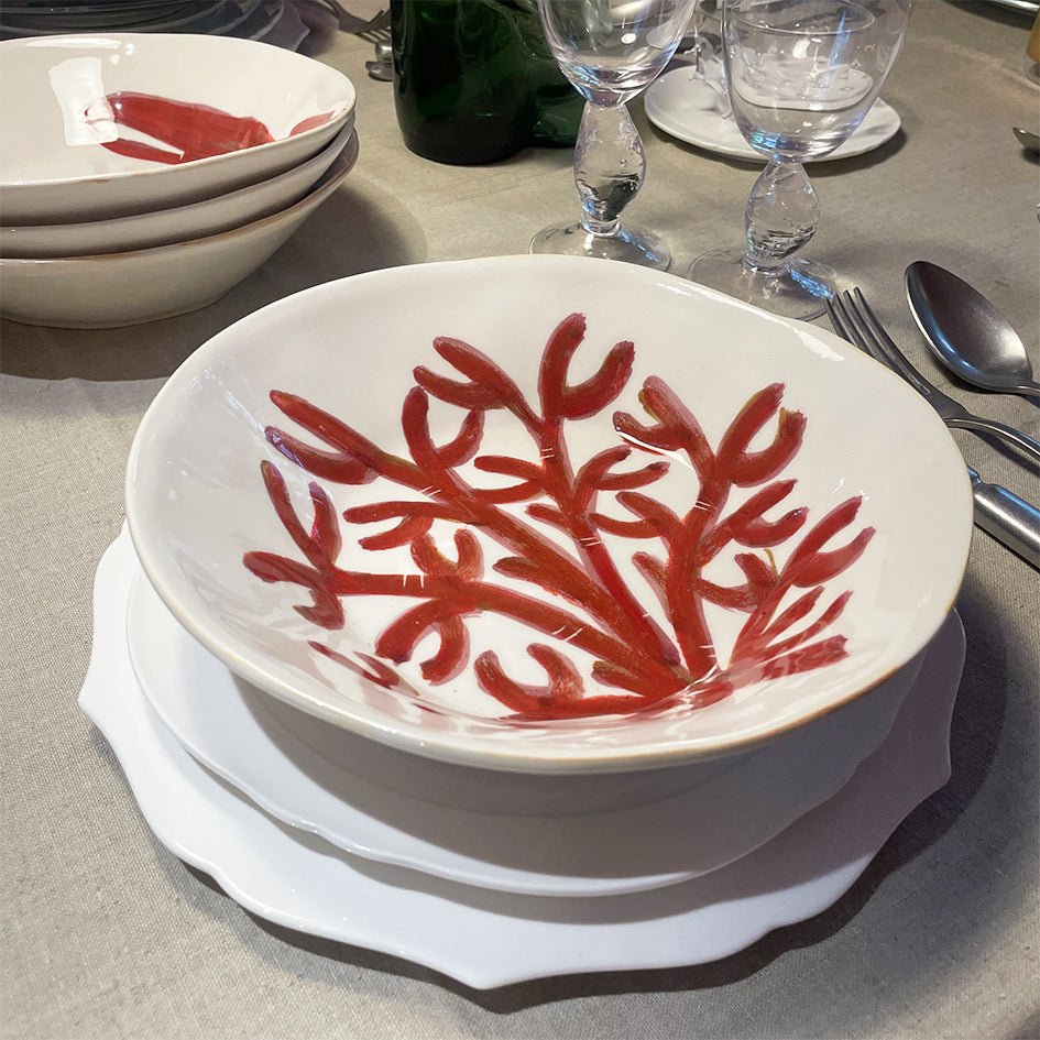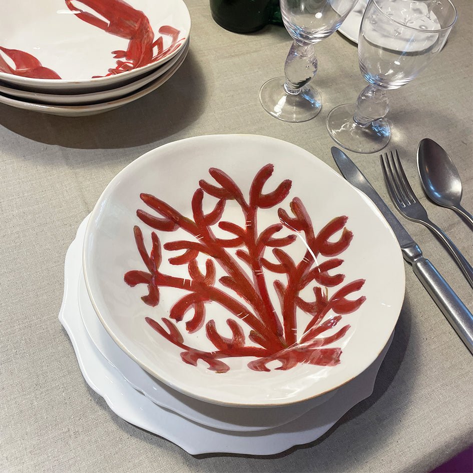 Het Koraal Diep Bord is onderdeel van de Au Bain Marie Nemo collectie, ontworpen door Aude Clément, en wordt met de hand gemaakt en beschilderd in Frankrijk. Elk stuk is uniek: kleine verschillen in kleur en vorm maken deel uit van de charme van dit ambachtelijke werk. Een klassiek ontwerp met een speelse twist – perfect voor wie houdt van stijlvolle tafelmomenten met karakter.