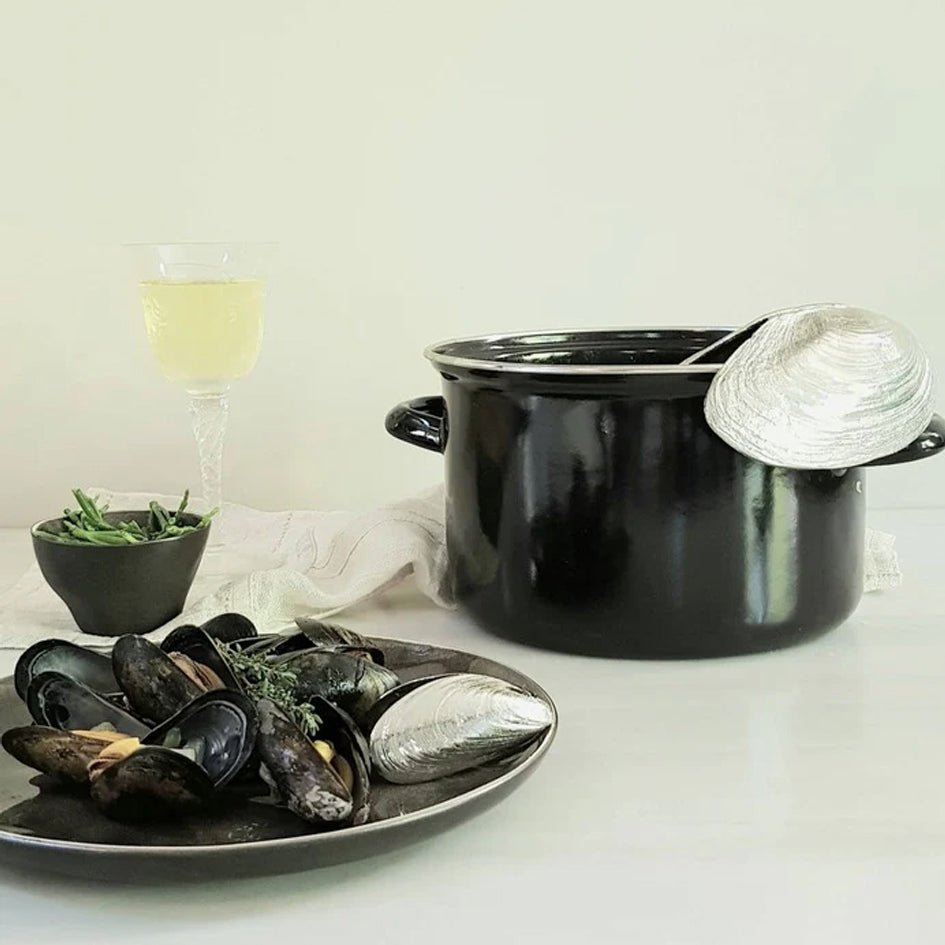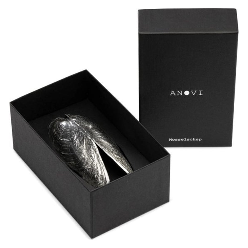 De Mosselschep van ANOVI is niet alleen functioneel, maar ook een bijzonder stukje design. Deze sierlijke schep in de vorm van een grote mossel is gemaakt van zuiver tin en wordt ambachtelijk gegoten in Nederland.