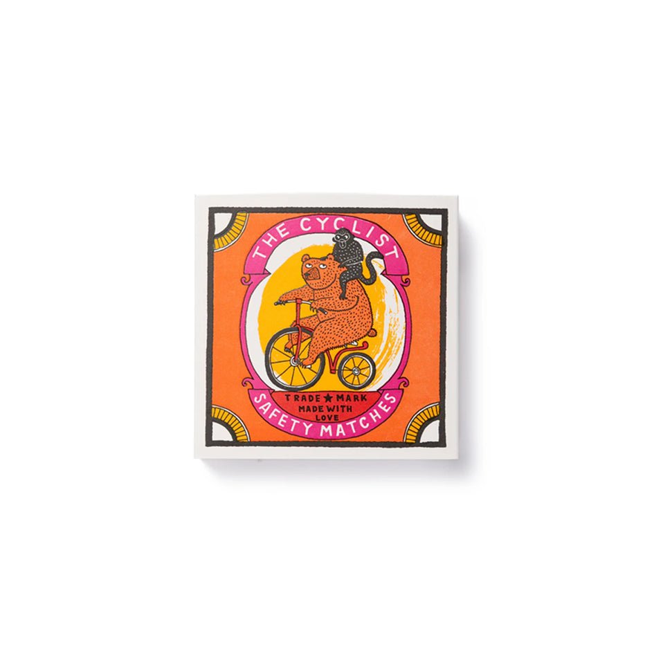 Met The Cyclist luciferdoosje van Archivist Gallery voeg je een speels en stijlvol detail toe aan je interieur. De illustratie van een klassieke wielrenner ademt nostalgie en vakmanschap – perfect voor iedereen die houdt van fietsen, beren, design en een tikje Britse humor.