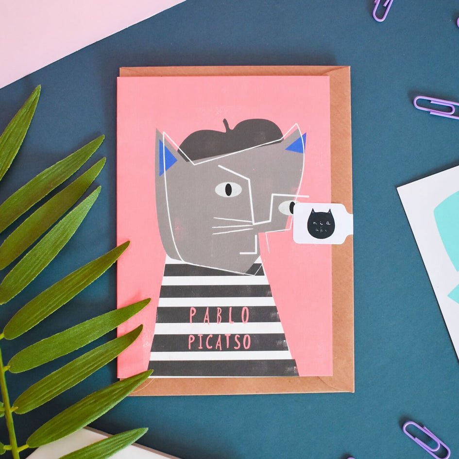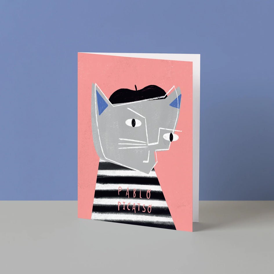 Laat iemand glimlachen met de wenskaart ‘Pablo Picatso’ van Niaski – een grappig, origineel en creatief kunstkatje, nu verkrijgbaar bij SuperMatique.