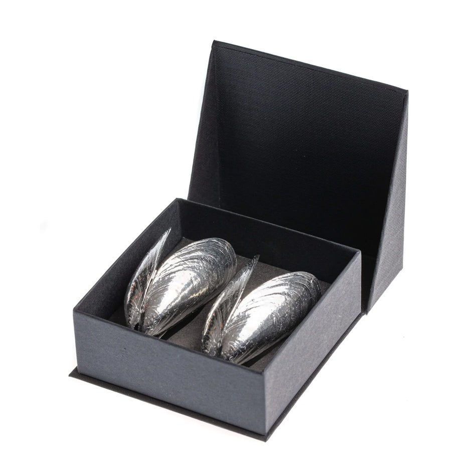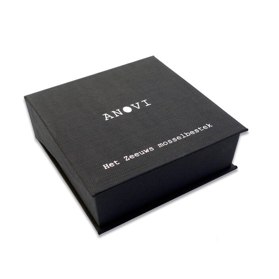 Het bestek wordt geleverd per set van twee in een zwart luxe doosje, compleet met certificaat van echtheid – een prachtig cadeau voor de echte mosselliefhebber. Let op: tin mag niet in de vaatwasser. Even afspoelen met warm water is voldoende om dit mooie bestek jarenlang mee te laten gaan.